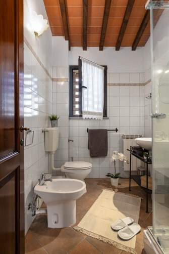 In the sleeping area we find a double bedroom, equipped with wardrobe, sheets and towels.